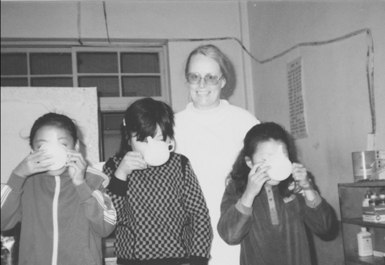 ▲ 아이들과 함께 있는 마리안느 스퇴거의 모습 (ⓒ 사단법인 마리안느와 마가렛 공식 사이트)