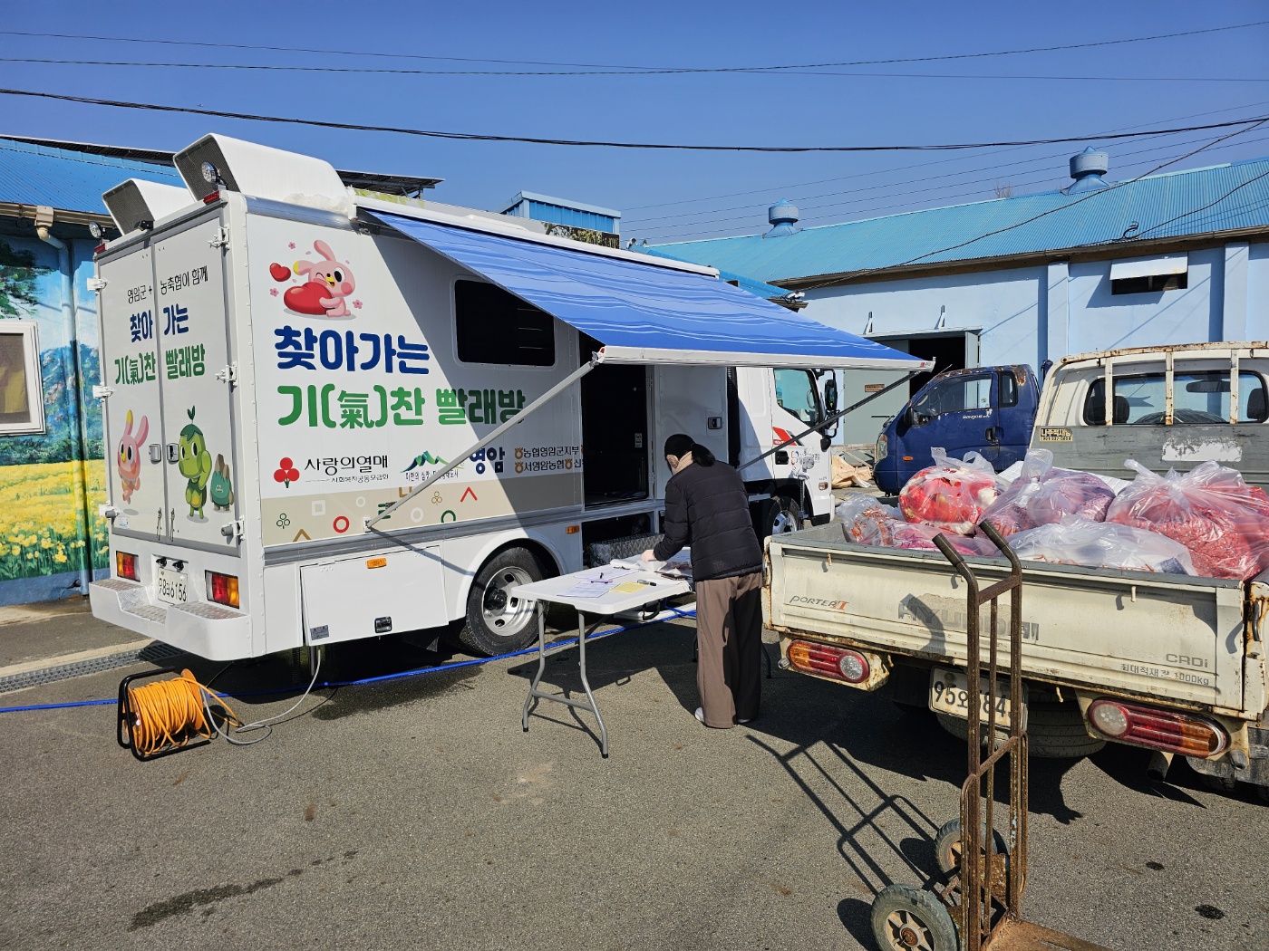 이동빨래방 차량은 주 3회 읍·면을 순회하며 어르신들이 계신 곳으로 직접 찾아갑니다. 2.5톤과 5톤, 두 대의 차량이 번갈아 움직이며 보다 많은 마을을 안정적으로 방문합니다.