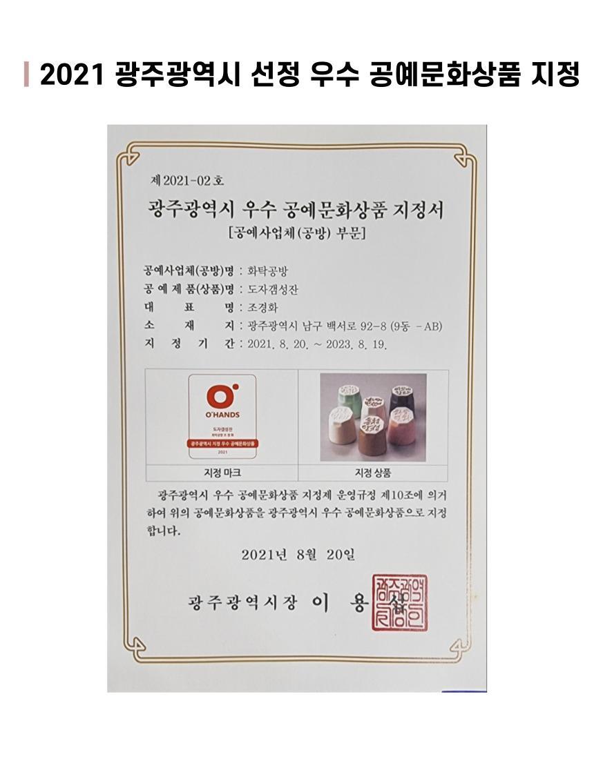 광주 우수공예문화상품 지정 도자 잔 세트(소주잔 3개+엽서+쇼핑백포장)