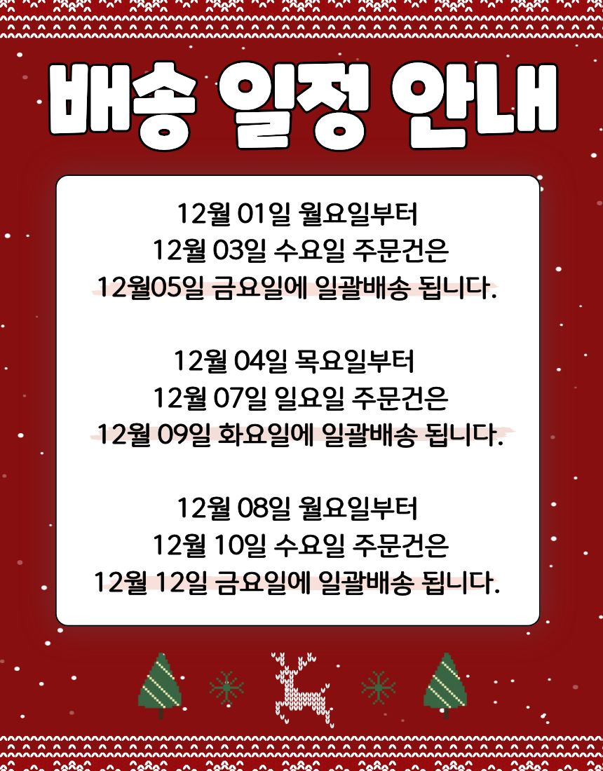 • 그 외 기간은 보냉종이박스 + 아이스팩(중형)1개로 구성되어 나가니 아이스박스가 필요하신 고객님은 옵션에 선택하시길 바랍니다.