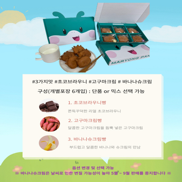 익산 마룡빵 세트 6개(초코브라우니, 고구마크림, 믹스 중 택 1)