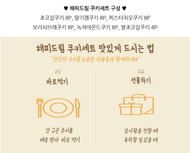 *따뜻한 차와, 커피 그리고 음료 등과 함께 해피드림 쿠키세트를 드셔보세요.