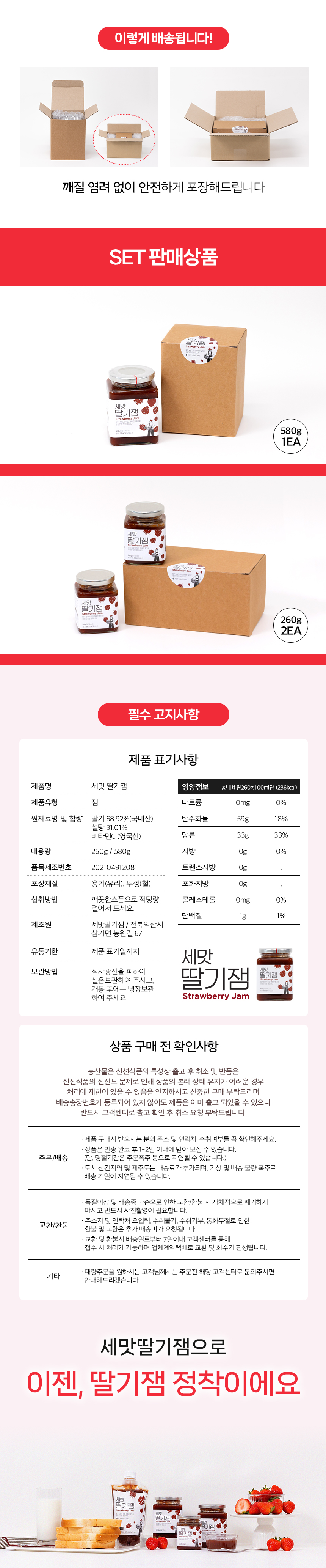 국내산 세맛딸기잼(260g*2병, 580g*1병)