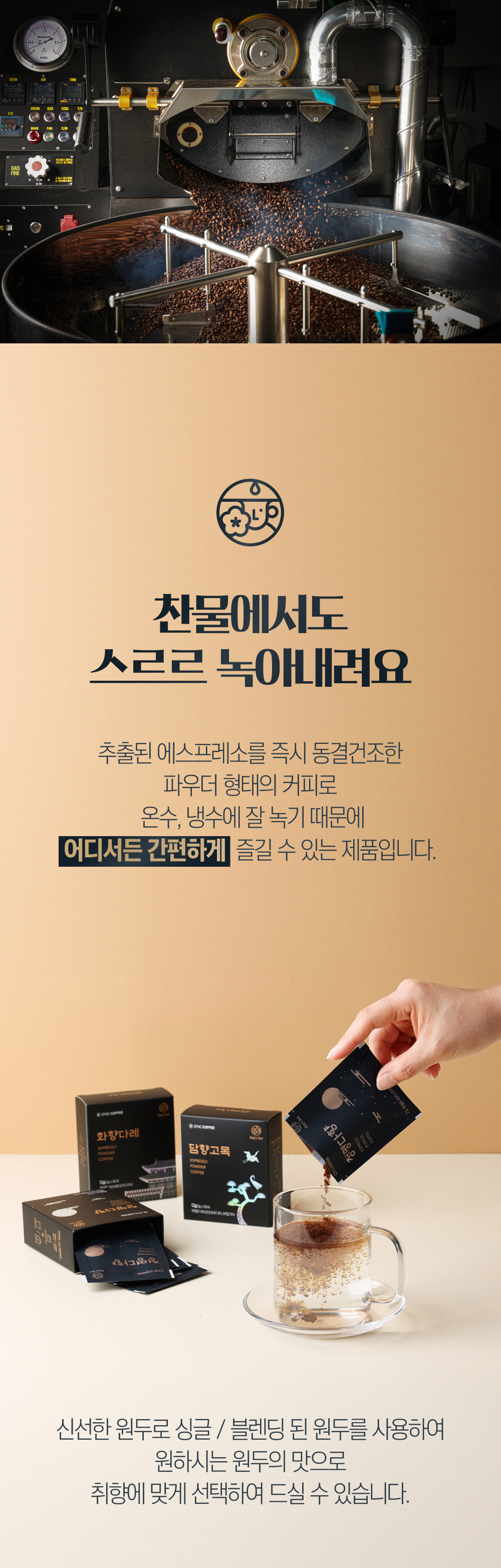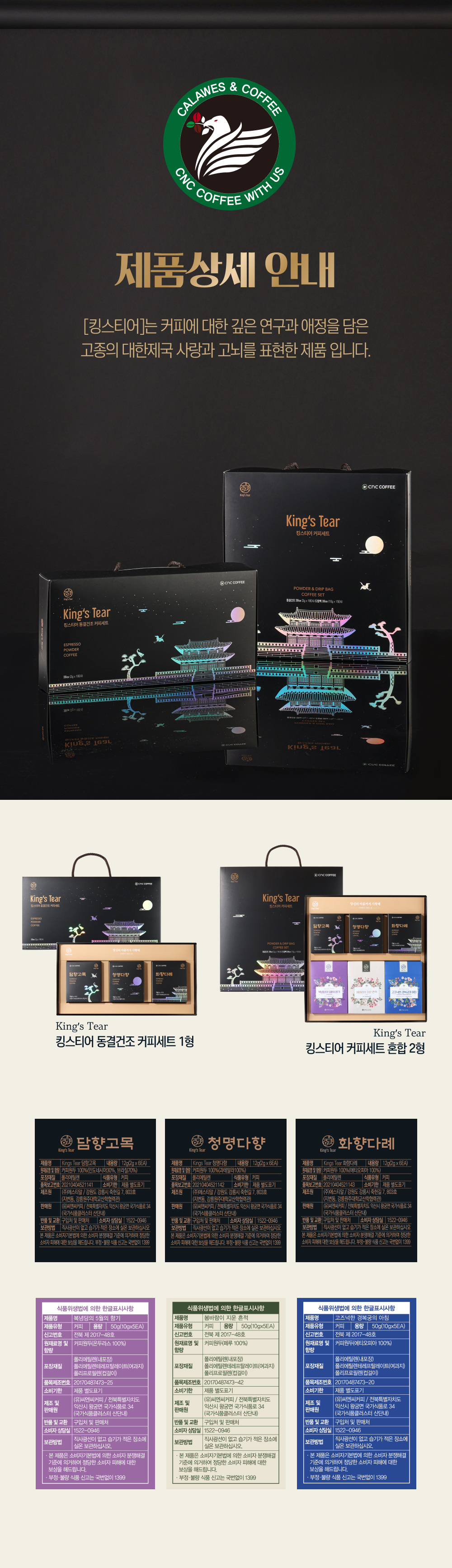 | 생산자 및 소재지(수입품의 경우 생산자, 수입자 및 제조국) | 씨앤씨커피 |