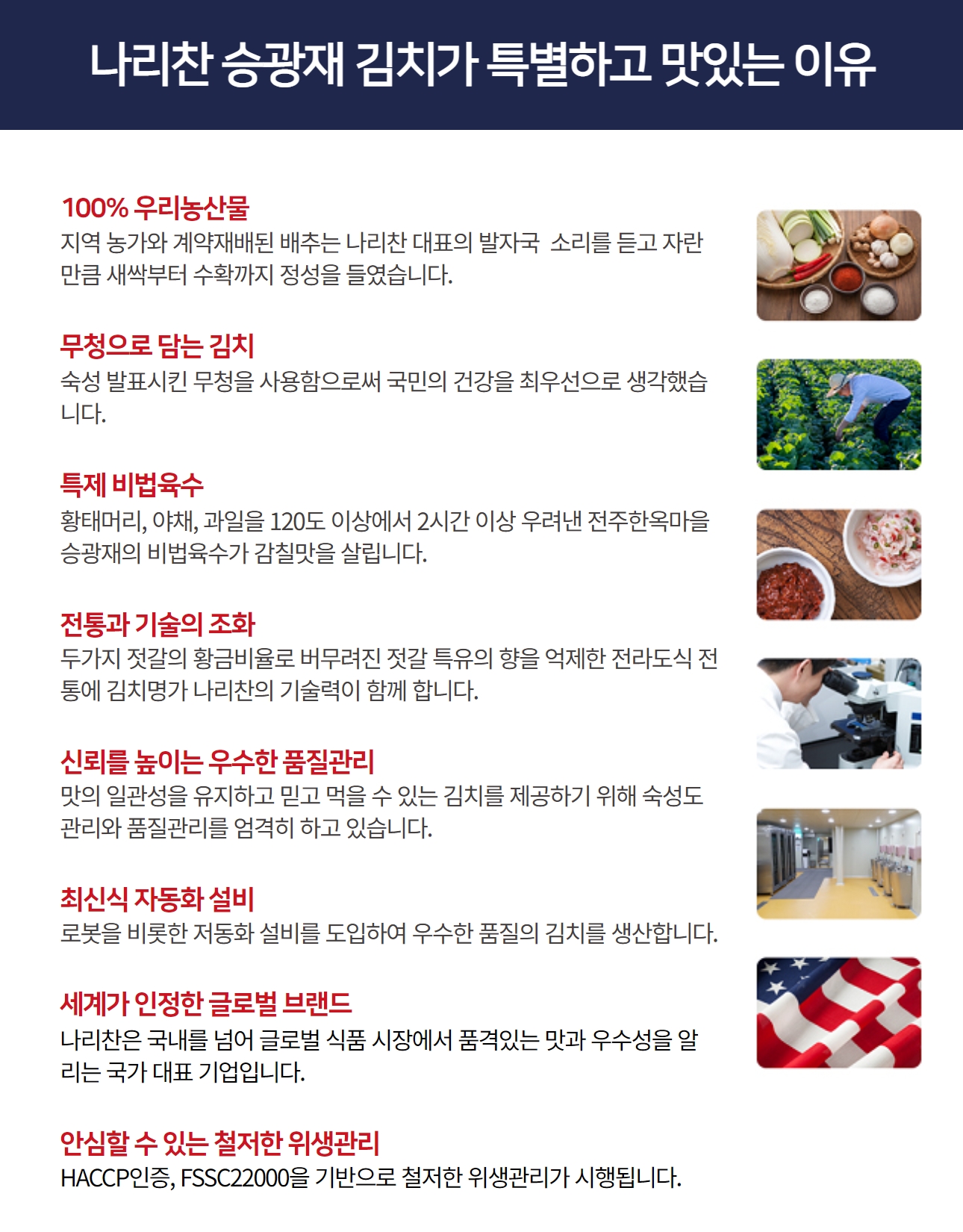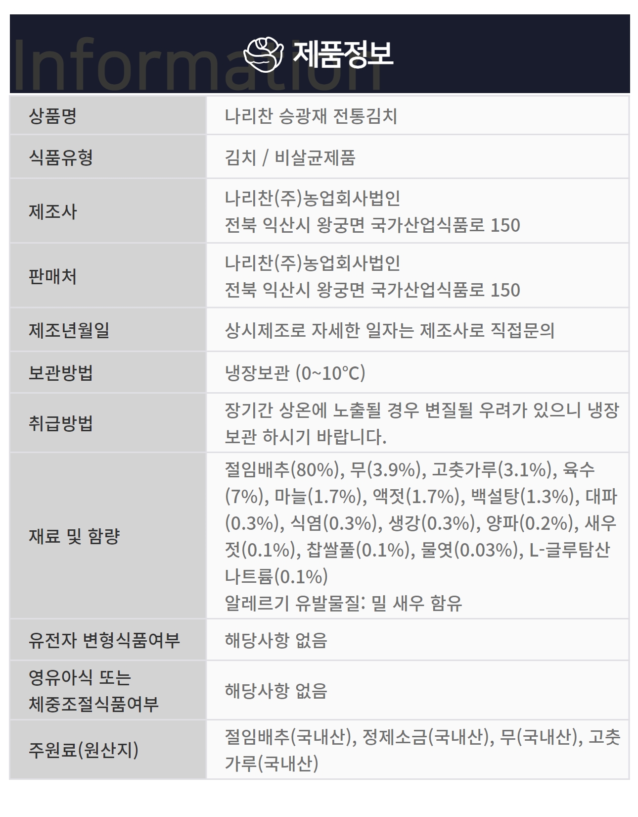 | 품목 또는 명칭 | 나리찬 승광재 전통김치 |