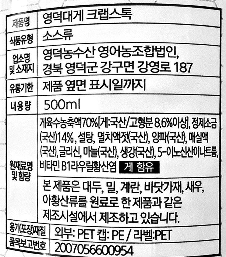 | 품목 또는 명칭 | 영덕게 크랩스톡 1000ml |