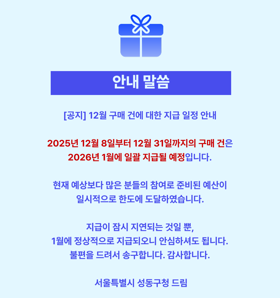 | 이용 가능 매장 | 성동구 관내 제로페이 가맹점 |