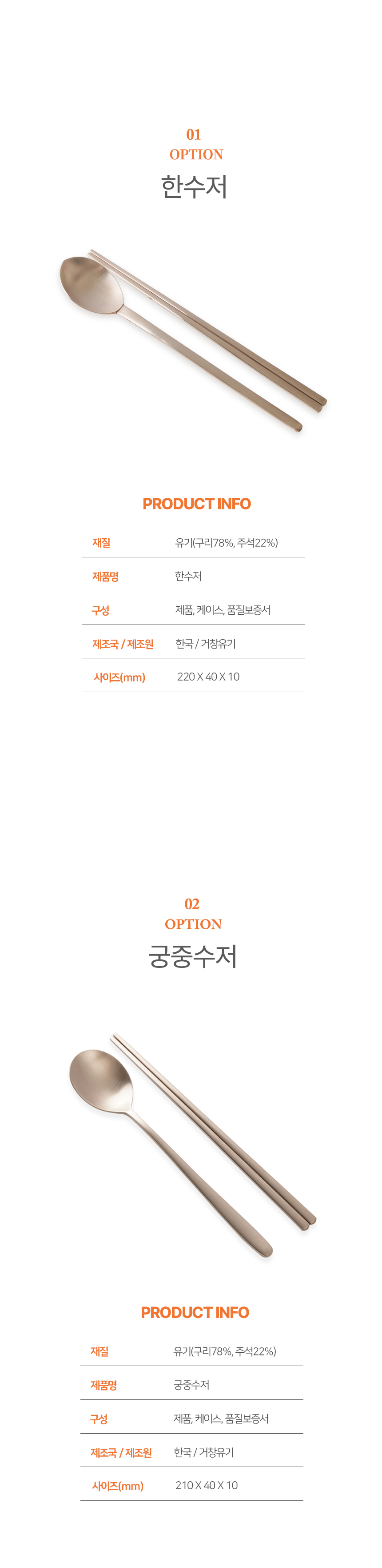 대통령상 수상 수공예 방짜유기 수저(한수저, 궁중수저)