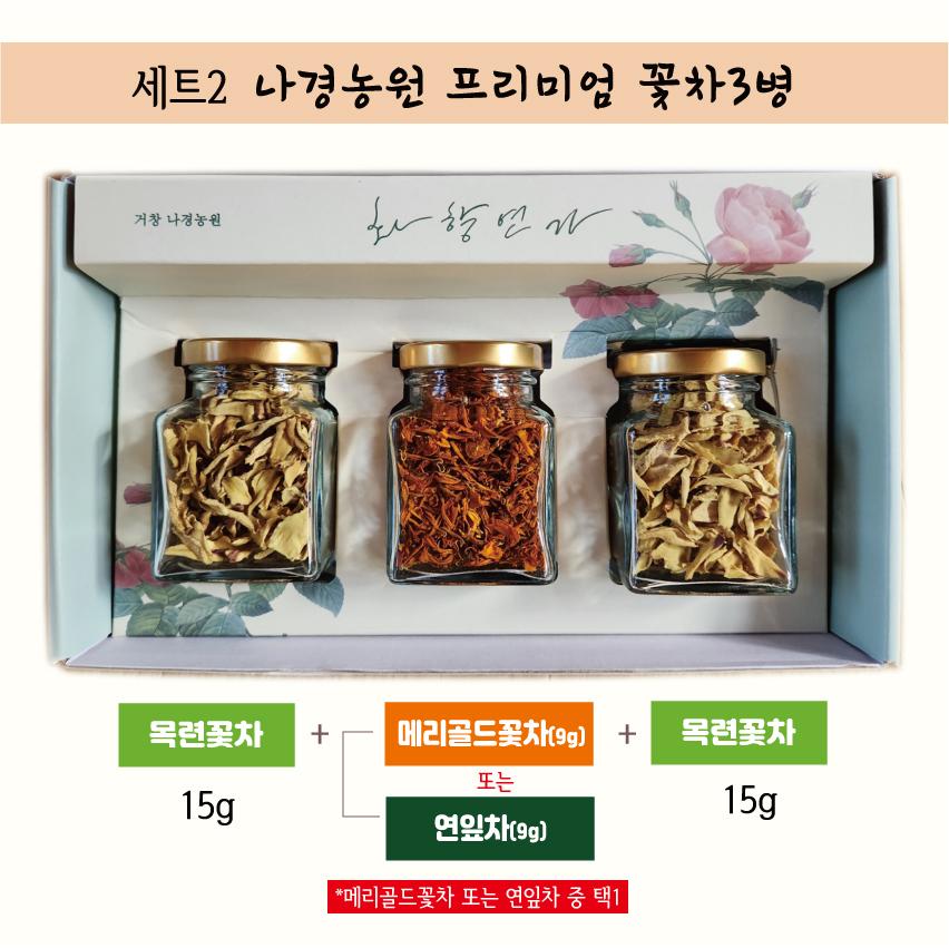 나경 프리미엄 수제꽃차 선물세트(꽃차 2병+티백 세트)