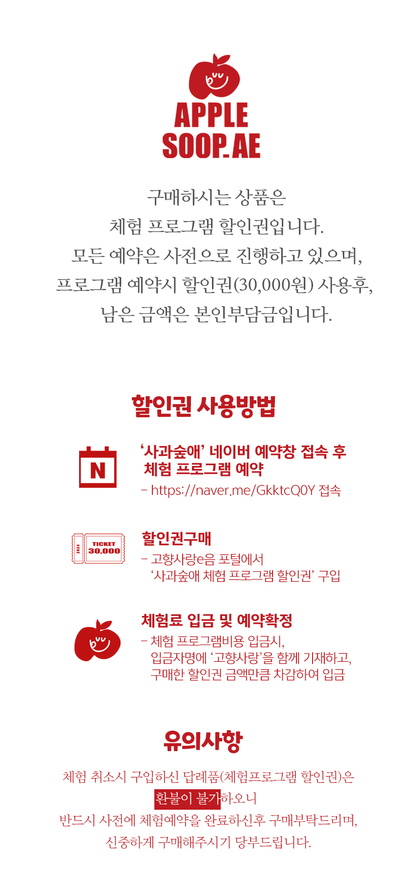 사과숲애 사과&미술 체험 프로그램 할인권 3만원권