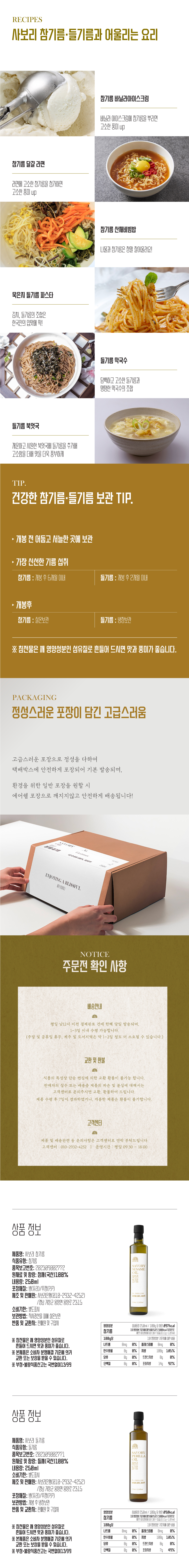 포장단위별 내용물의 용량(중량), 수량 | 참기름 250ml, 들기름 250ml |