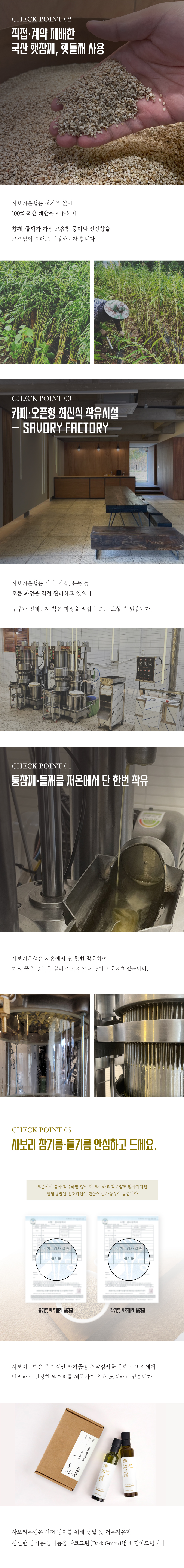 제품명 | 사보리 국산 저온압착 참기름, 들기름 선물세트(250ml) |