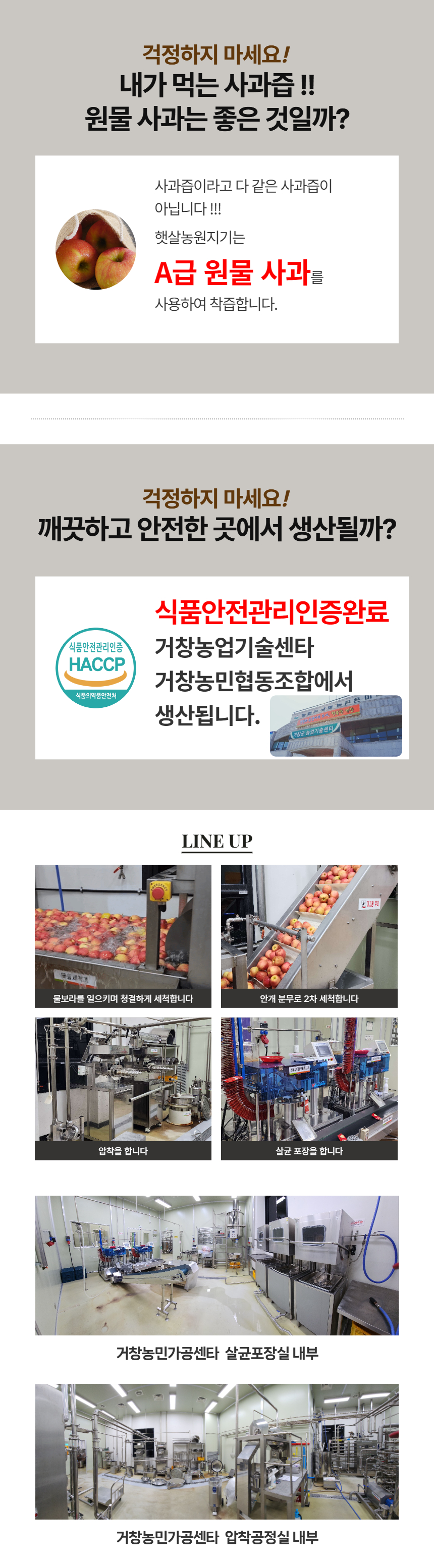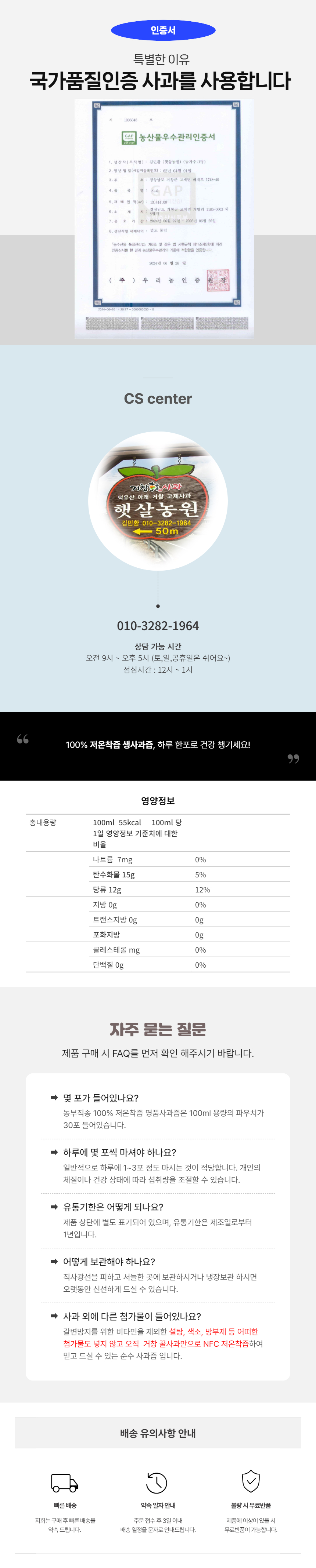 원재료명 (「농수산물의 원산지 표시 등에 관한 법률」에 따른 원산지 표시 포함) 및 함량(원재료 함량 표시대상 식품에 한함) | 경남 거창군 고제면 사과 99.9%, 비타민 0.1% |