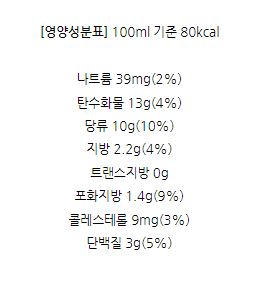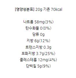 | 영양성분 (영양성분 표시대상 식품에 한함) | 상세정보 별도표기 |