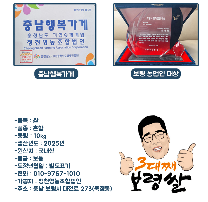 | 품목 또는 명칭 | 3대째 보령쌀 햅쌀 |