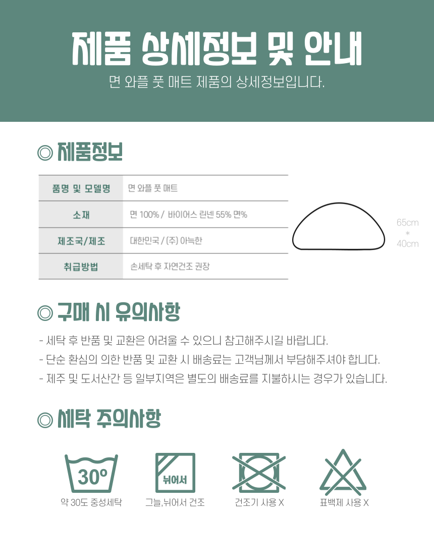 면 100% 와플원단 발매트 세트(프릴1장+심플1장)