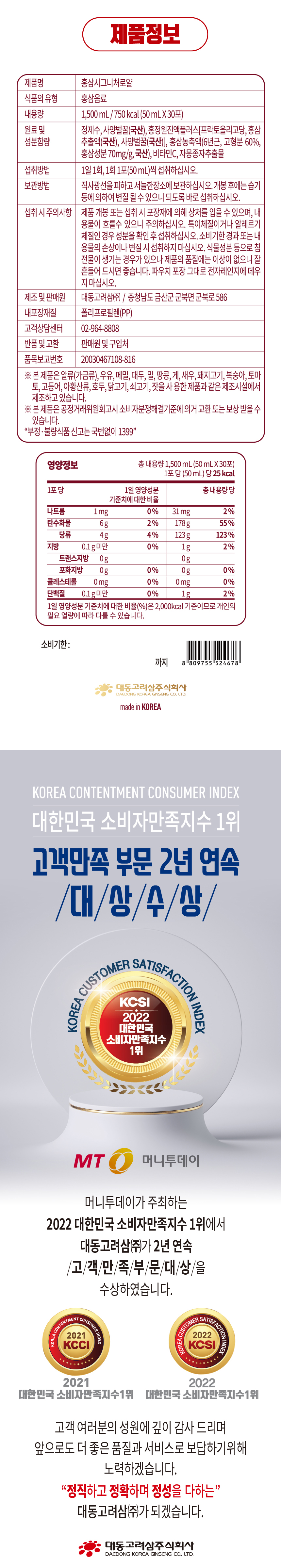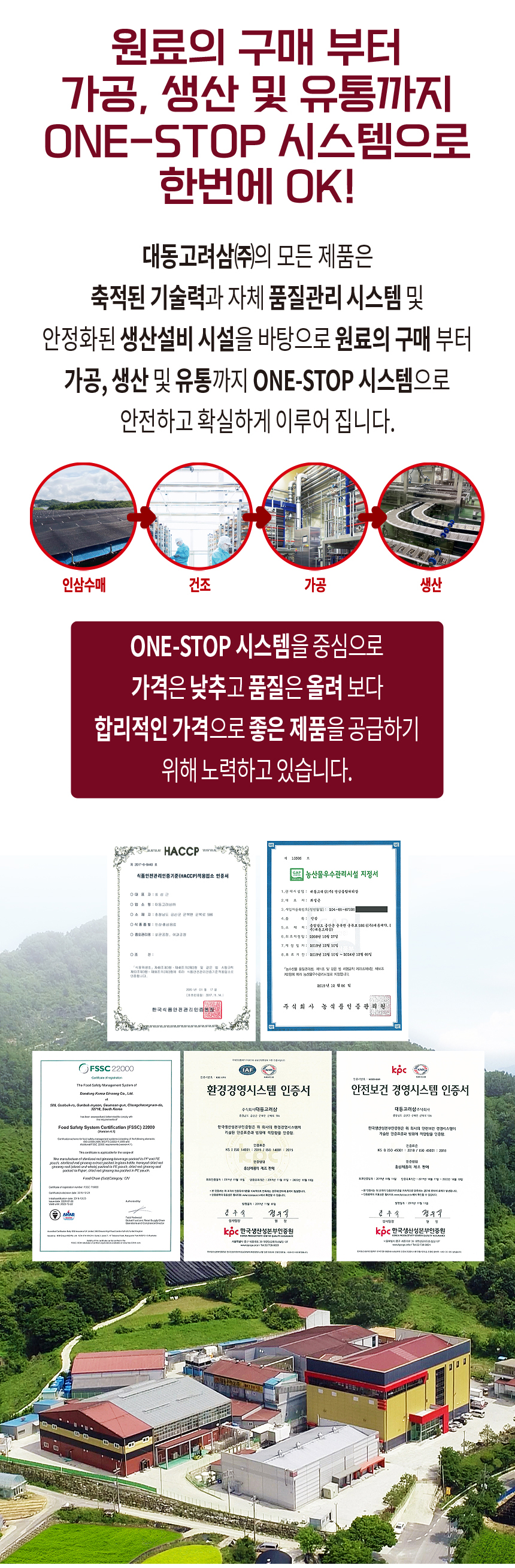 | 생산자 및 소재지(수입품의 경우 생산자, 수입자 및 제조국) | 생산자 : 대동고려삼(주) / 소재지 : 충청남도 금산군 군북면 군북로 586 |