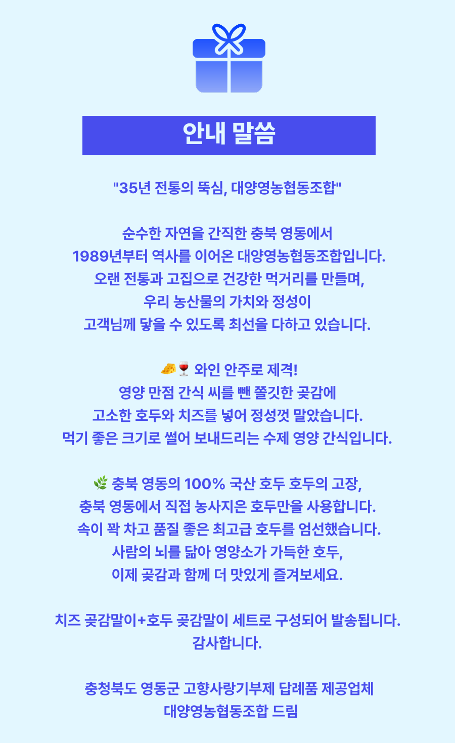 100% 국산 호두 곶감말이 36개(호두 곶감말이 18개+치즈 곶감말이 18개)