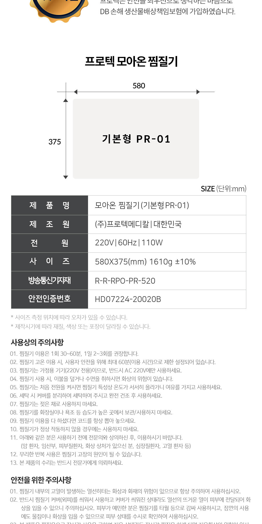 | 품명 및 모델명 | 모아온 전기 찜질기 폭죽/꽃동산 PR-01 |