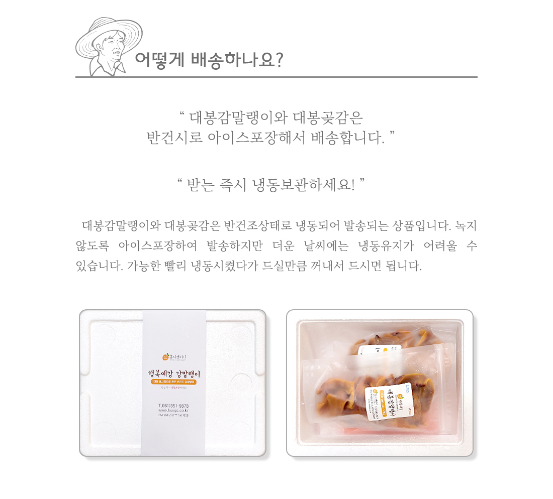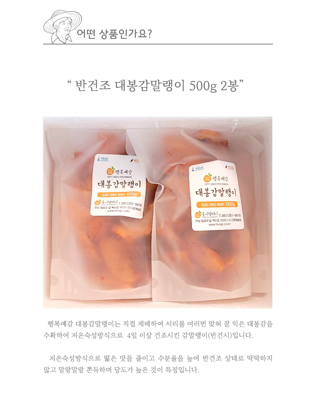 | 상품구성 | 대봉감말랭이 500g 2봉지 |