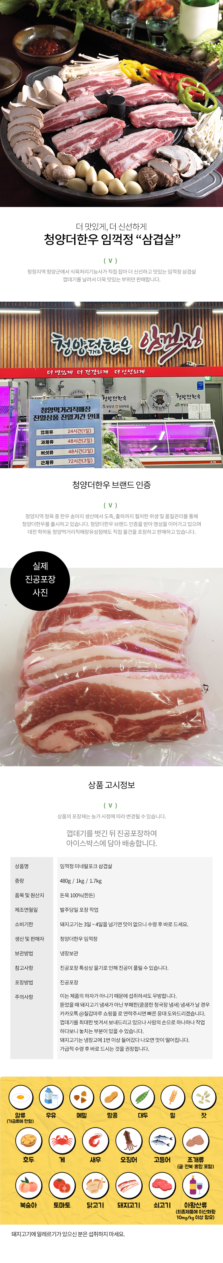 청양더한우 임꺽정 돼지고기 한돈 삼겹살 1kg