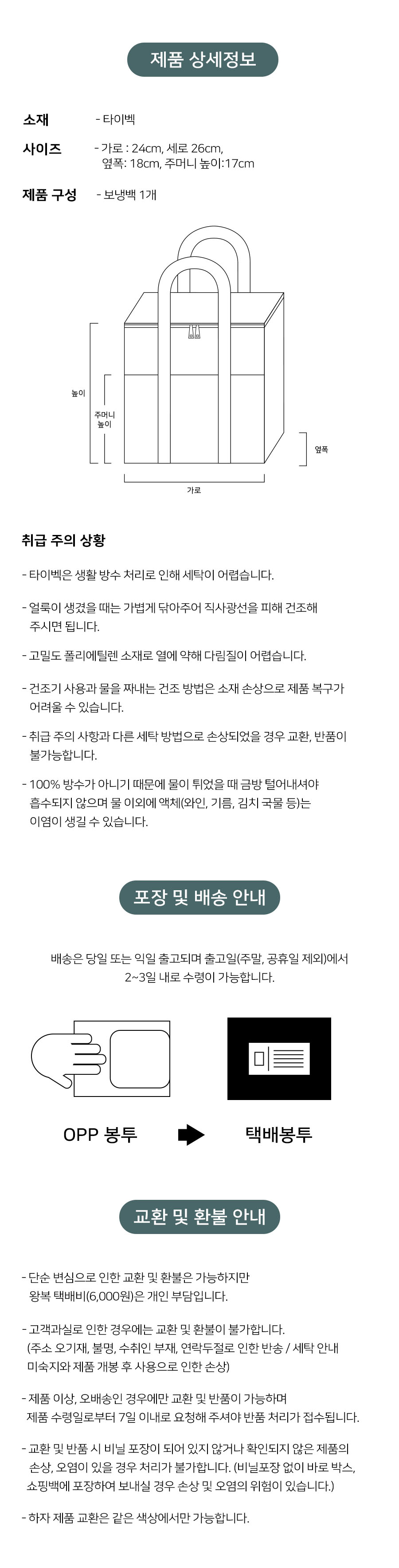 행복한쓰임 친환경 생활방수 타이벡 보냉백
