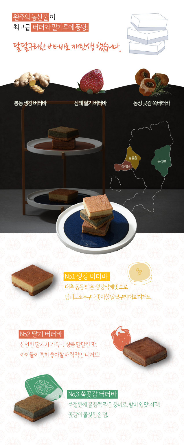 생강버터바 4개,딸기버터바2개,쑥곶감버터바2개 총 8개 구성으로 준비가 됩니다.