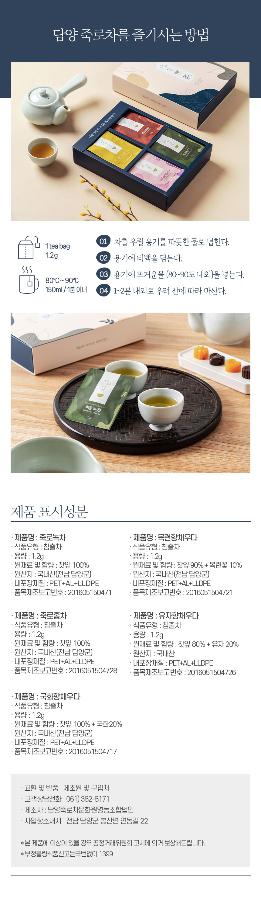 | 생산자 및 소재지(수입품의 경우 생산자, 수입자 및 제조국) | 담양죽로차문화원 |