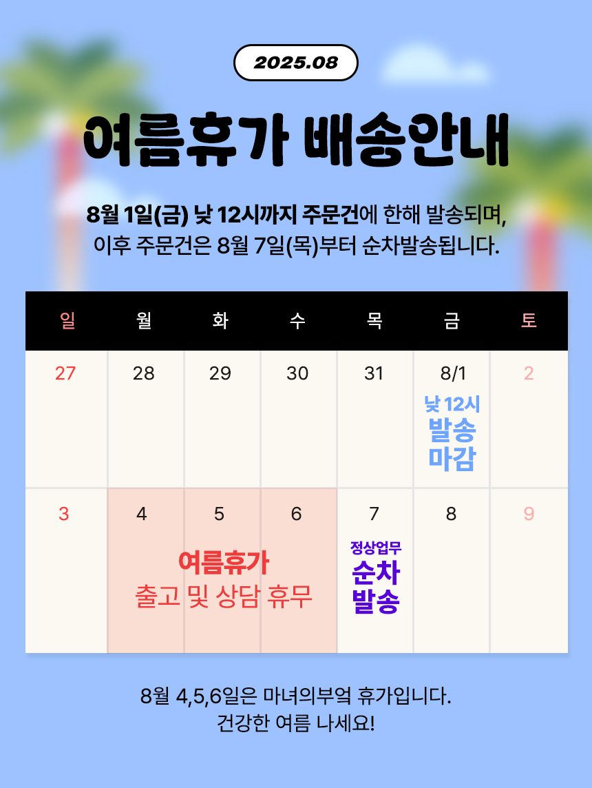 | 제조연월일, 소비기한 또는 품질유지기한 | 주문일로부터 180일이내 제조된 상품으로 발송 |