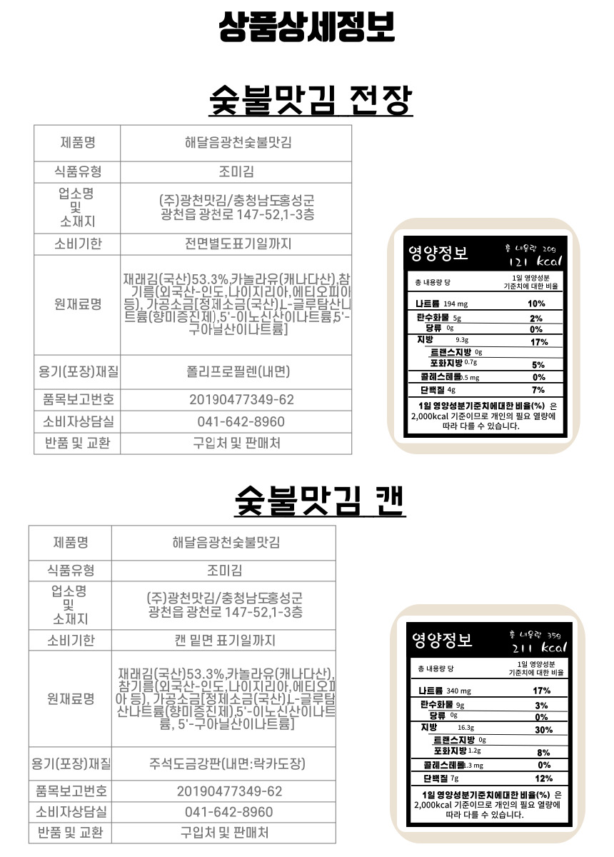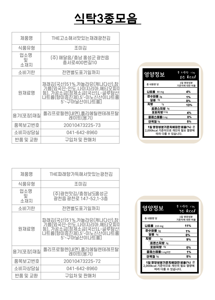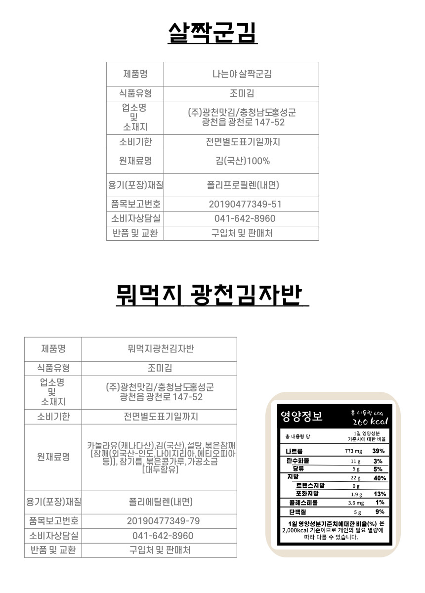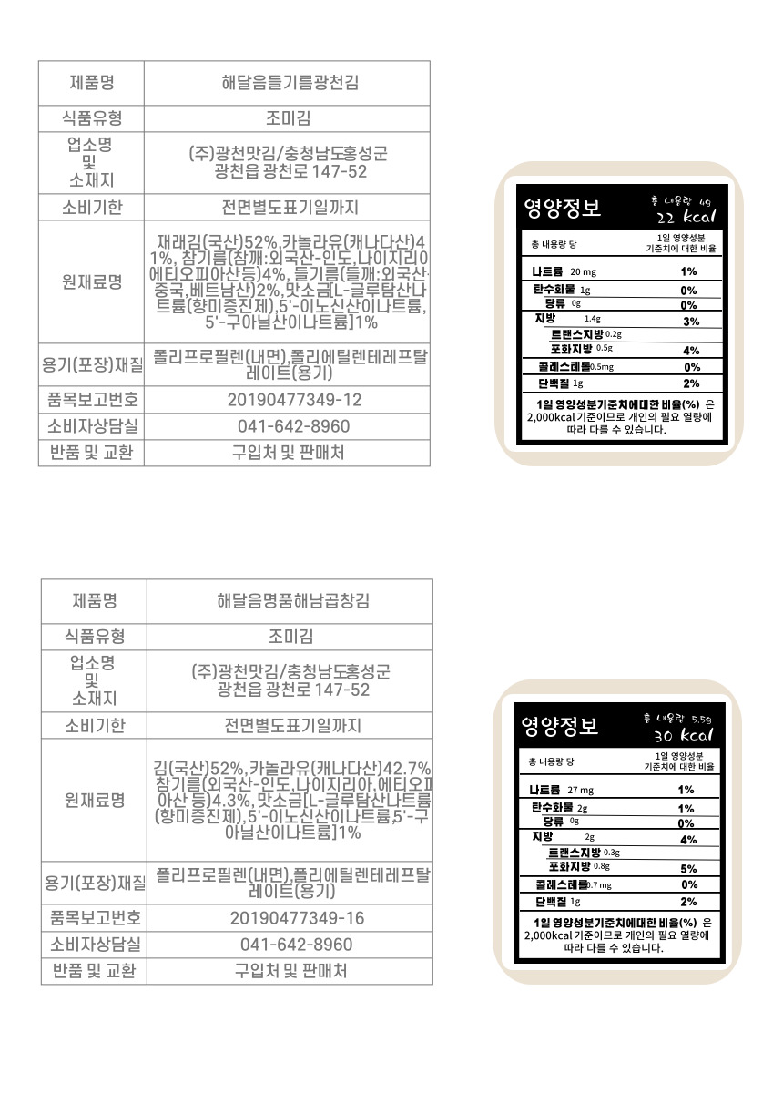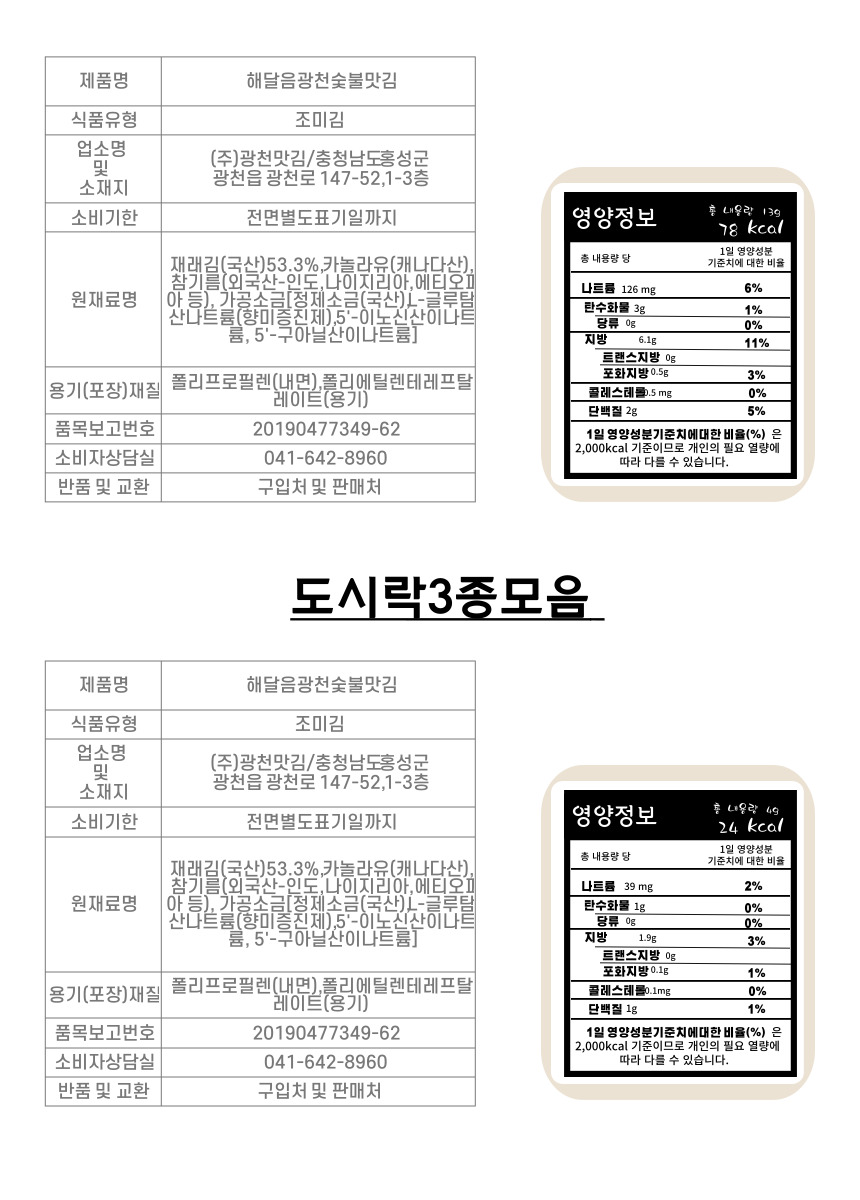 | 제조연월일, 소비기한 또는 품질유지기한 | 상세정보 별도표기 |