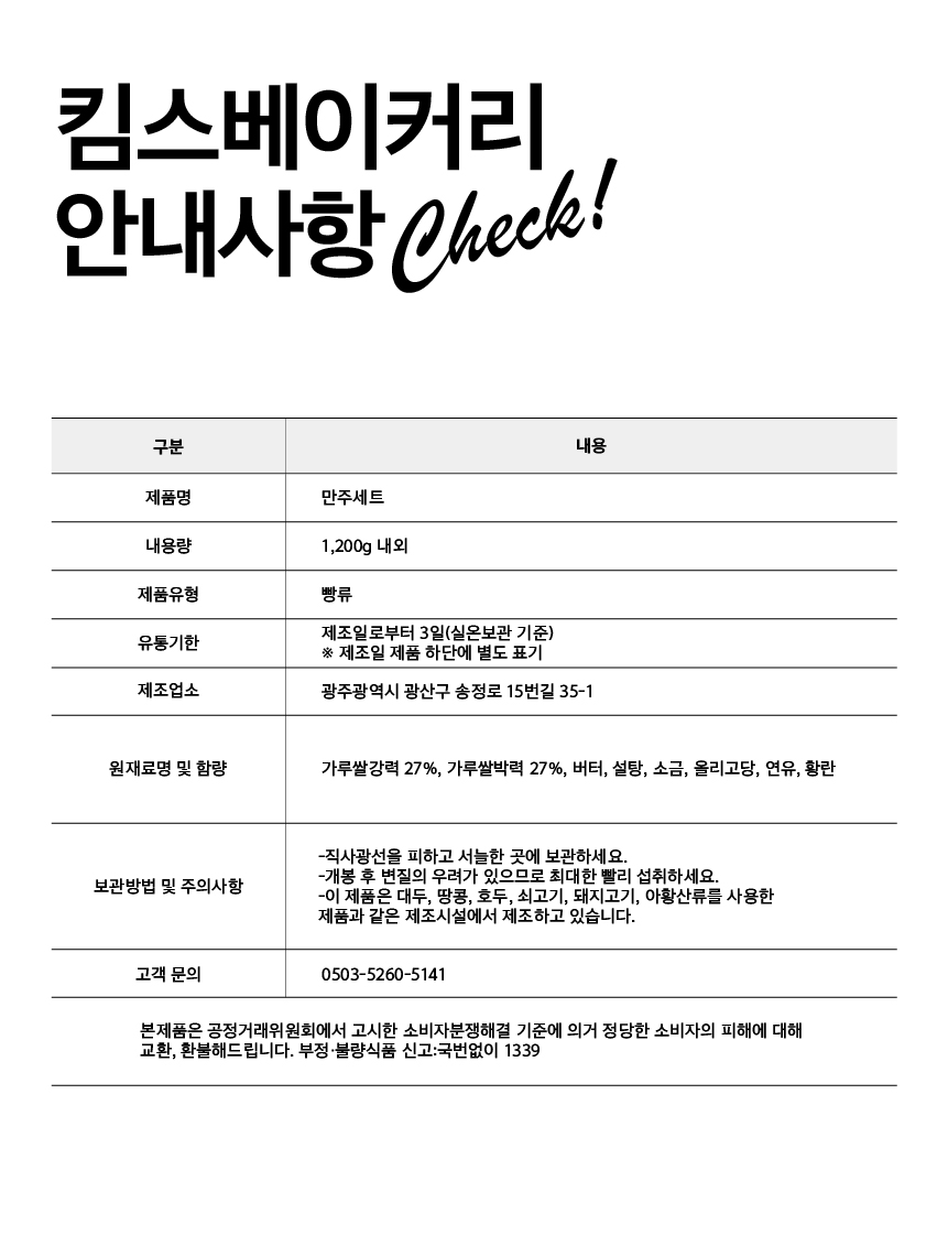 | 제조연월일, 소비기한 또는 품질유지기한 | 상세정보 별도표기 |