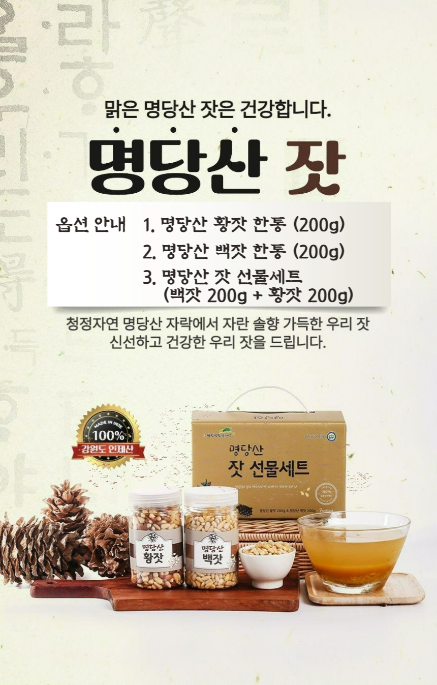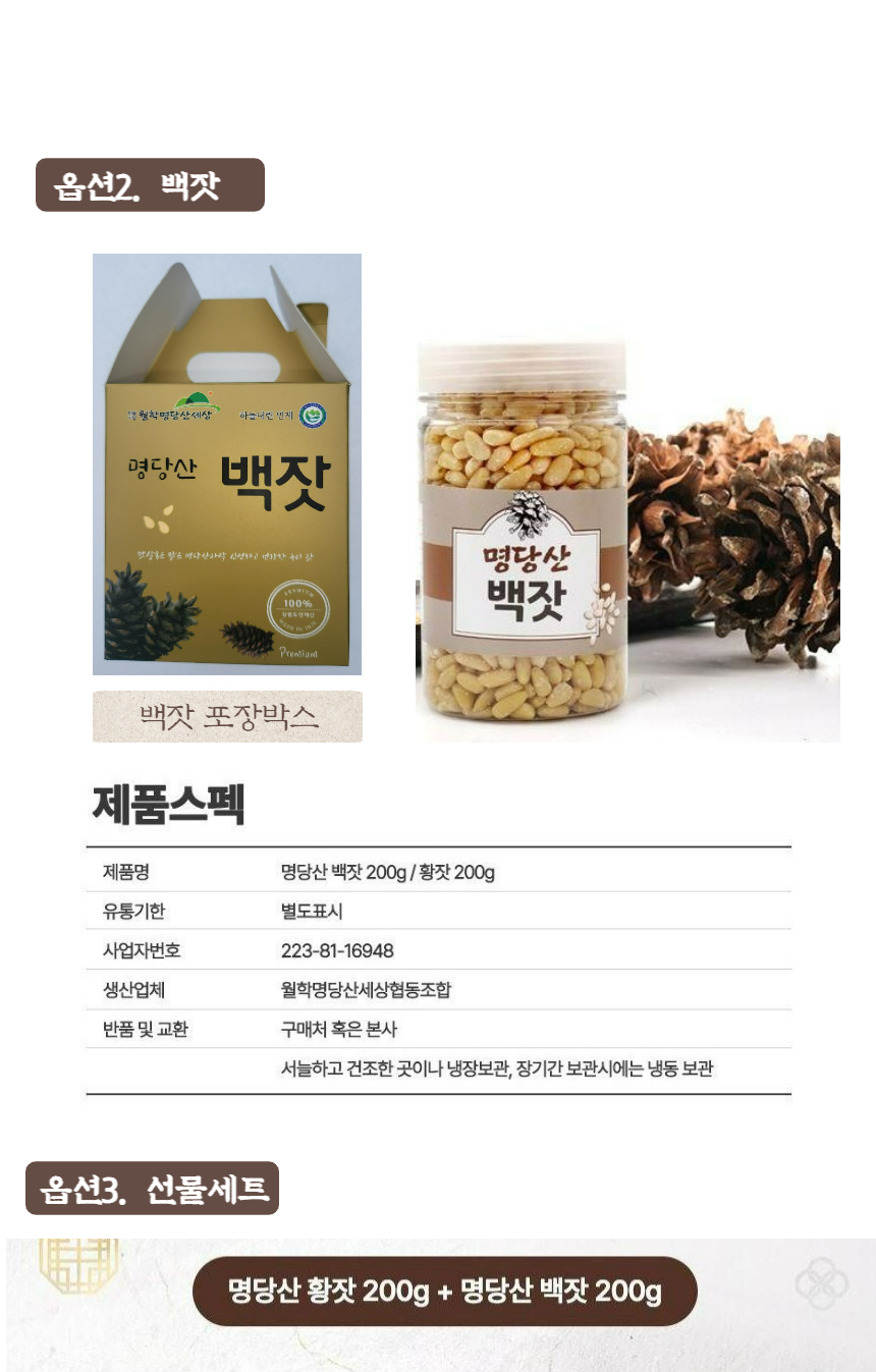 - 명단산 잣 선물세트(황잣 200g + 백잣200g) : 60,000원