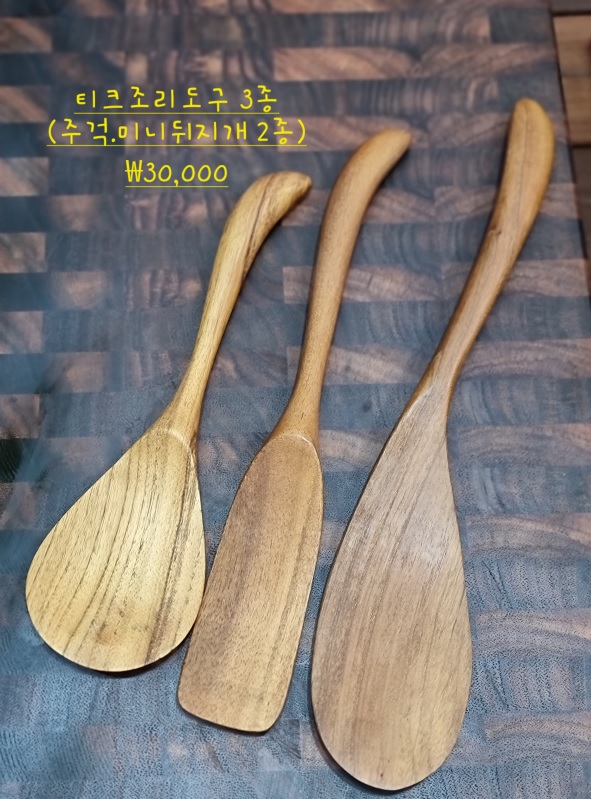 원목 조리도구 티크 3종 세트(주걱 1개+미니 뒤집개 2개)