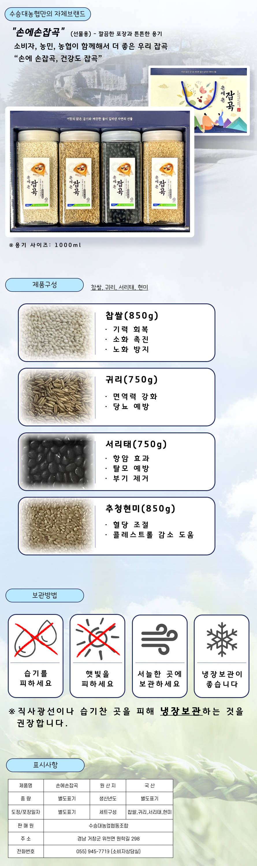 손에손잡곡 세트 (찹쌀,귀리,서리태,현미)