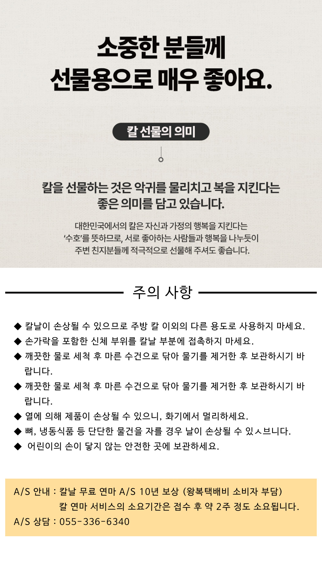| A/S 책임자와 전화번호 | 055-336-6340 |