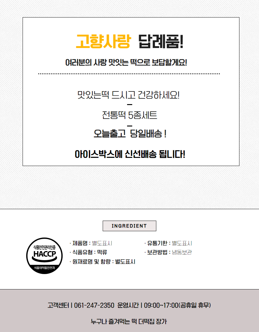 [이벤트] 한 끼 대용 전통떡 5종세트 3kg(호박시루떡+영양떡+꿀설기+약식+가래떡)