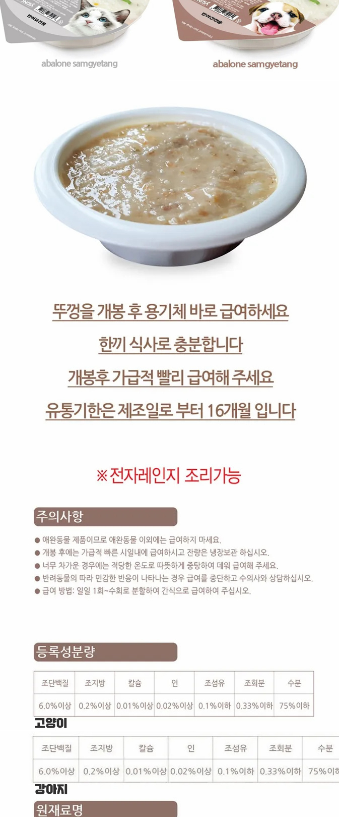 강아지, 고양이 전복영양식 720g(전복삼계탕, 전복해신탕 중 택1 120g*6개)
