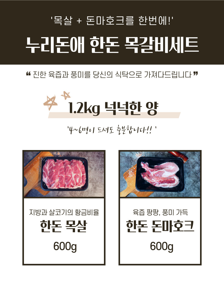 [이벤트] 한돈 목갈비 세트 1.4kg(목살, 돈마호크 각 600g+각 100g)