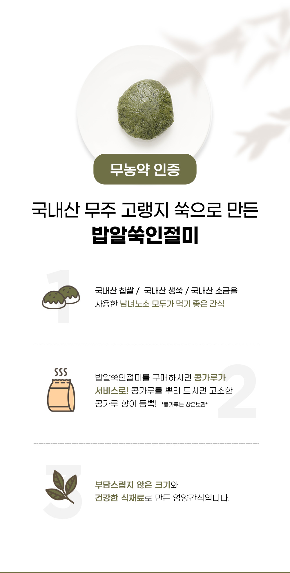 | 포장단위별 내용물의 용량(중량), 수량 | 밥알쑥인절미600g, 쑥앙꼬절편 390g, 앙버터절편400g |