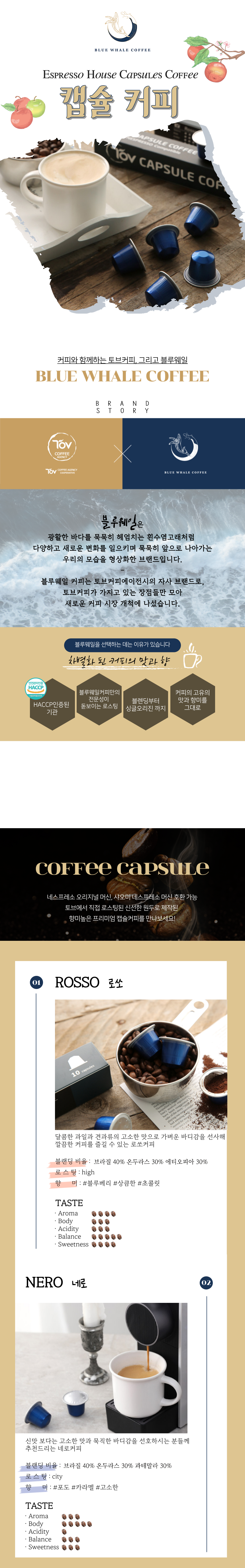 로쏘, 네로 블루웨일 캡슐커피 블렌딩 원두 250g(5g*25개*2종)