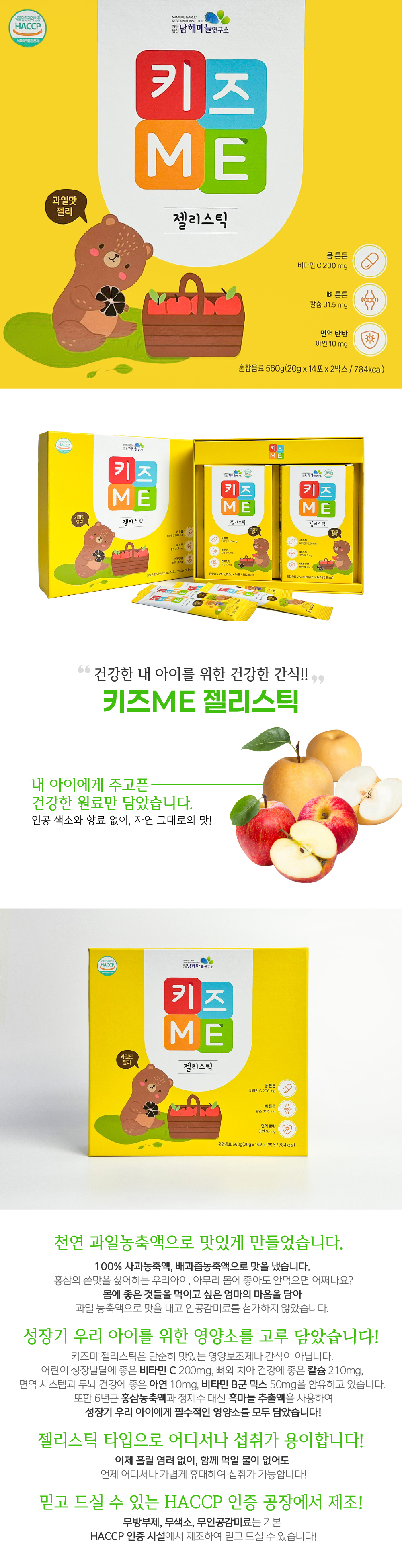 천연 과일농축액 키즈ME젤리스틱 560g(20g*14포*2박스)