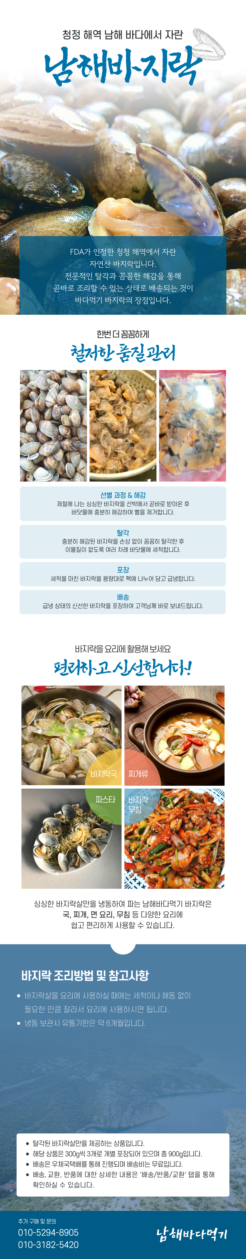 남해 바다에서 자란 깐 바지락 세트 900g(300g*3팩)