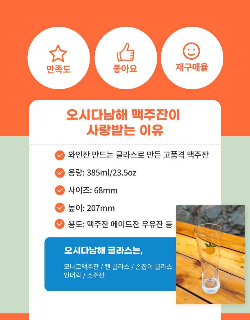 <오시다남해 글라스세트1 구성: 캔글라스1, 손잡이글라스1, 언더락 1, 소주잔1><오시다남해 글라스세트2 구성: 캔글라스2, 손잡이글라스1> <모나코 맥주잔세트 구성: 모나코 맥주잔 2개 1세트><친친맥주잔 세트 구성: 친친맥주잔 3개 1세트> <시리얼머그세트 구성: 시리얼머그 3개 1세트> <하이볼 글라스세트 구성: 450ml 하이볼글라스 3개/340ml 하이볼글라스 3개 1세트><소주잔세트 구성: 유자 팔각소주잔2, 유자 맥주소주잔2, 유자꽃 팔각소주잔1, 유자꽃 맥주소주잔1> <와인잔세트 구성: 와인잔 3개 1세트>