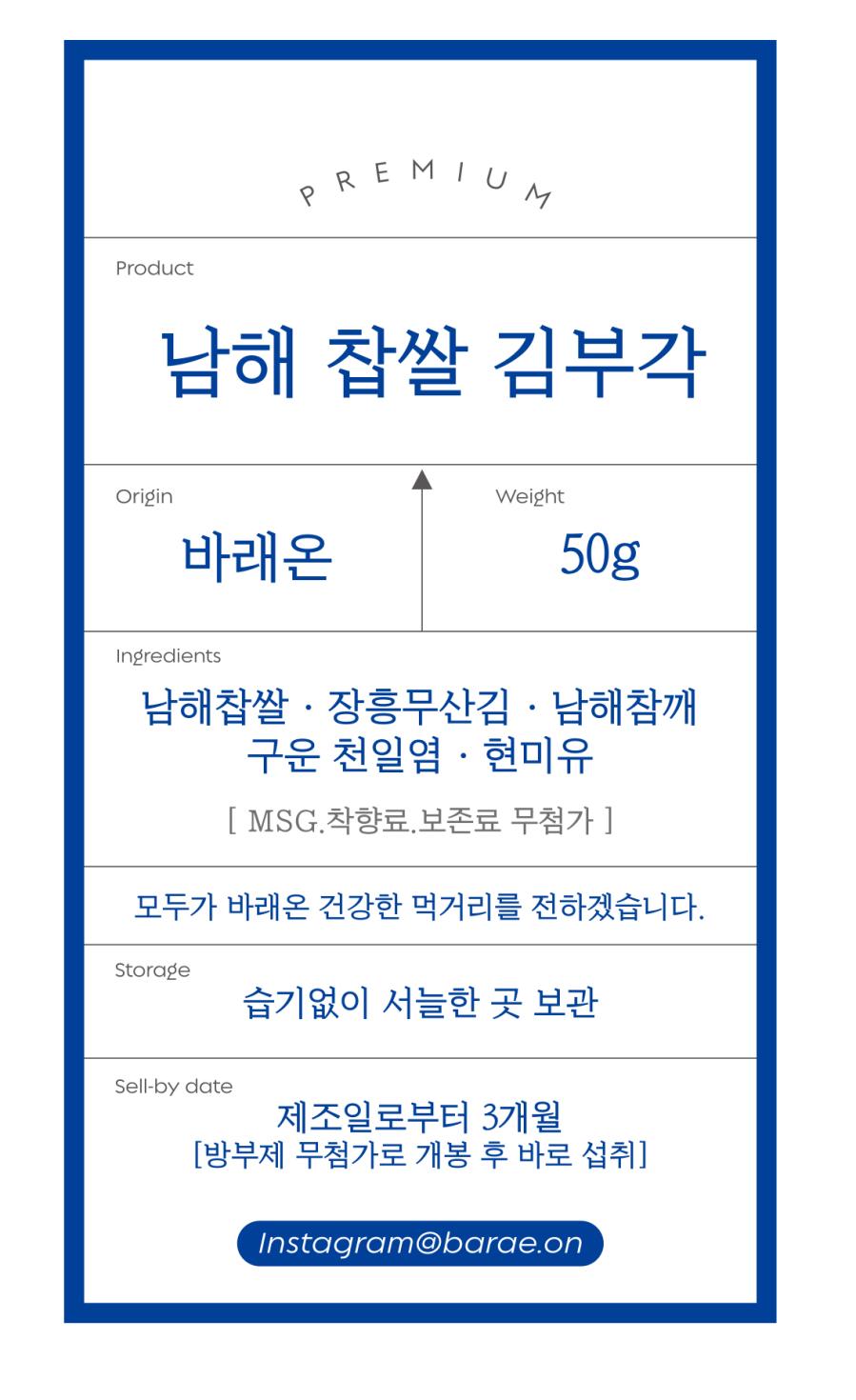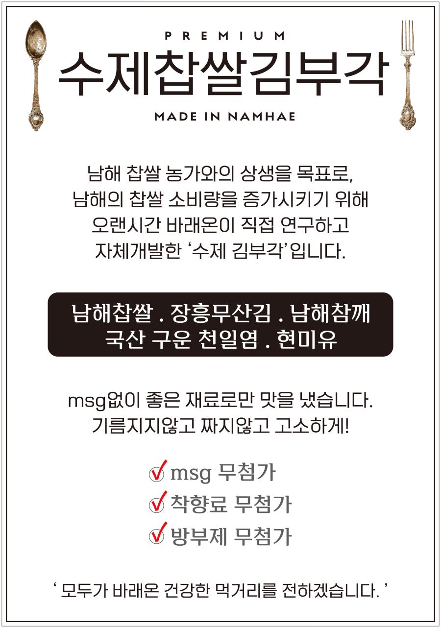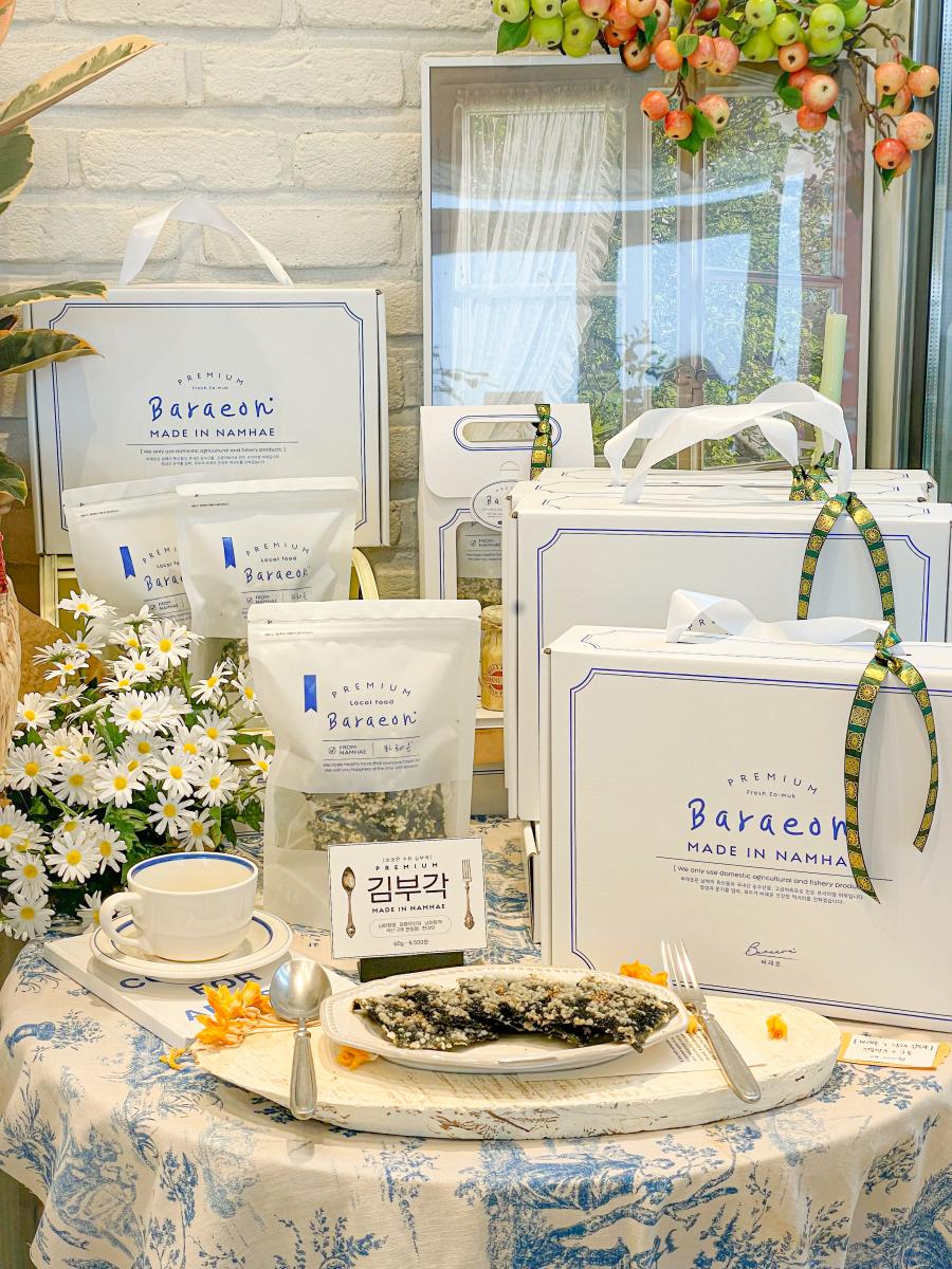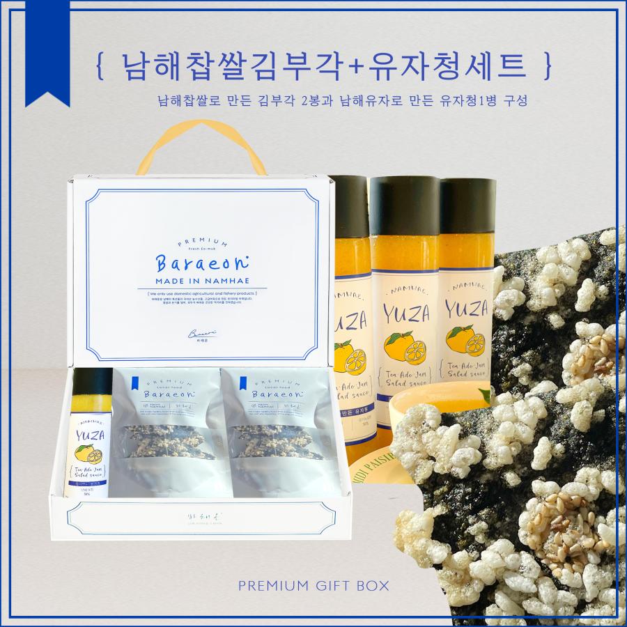본 세트구성은 남해 찹쌀김부각 2봉, 남해 유자청 1병으로 선물구성되어 있습니다.