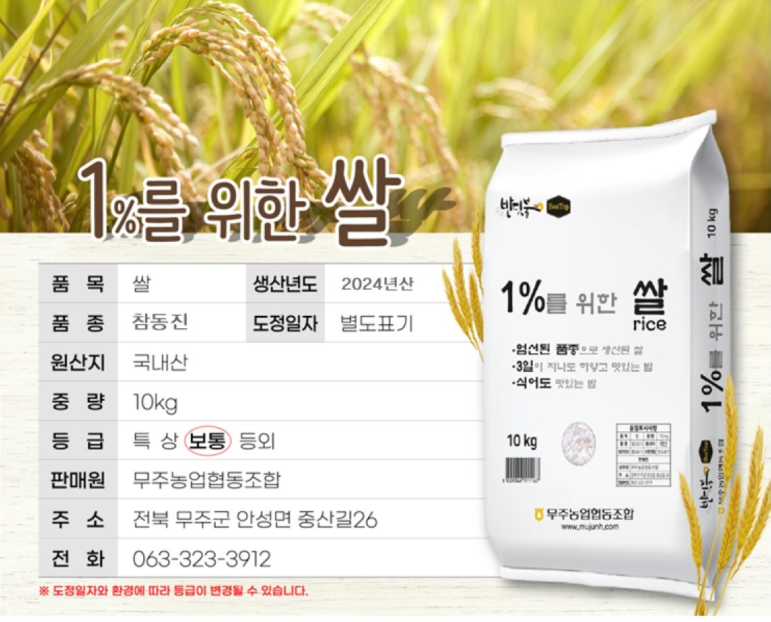 | 생산자/수입자 | 무주농협친환경유통사업단 |