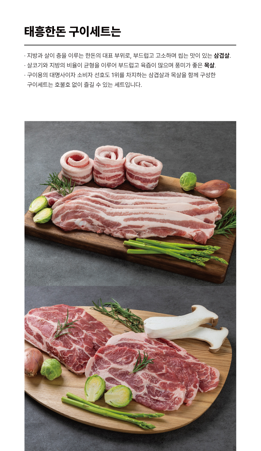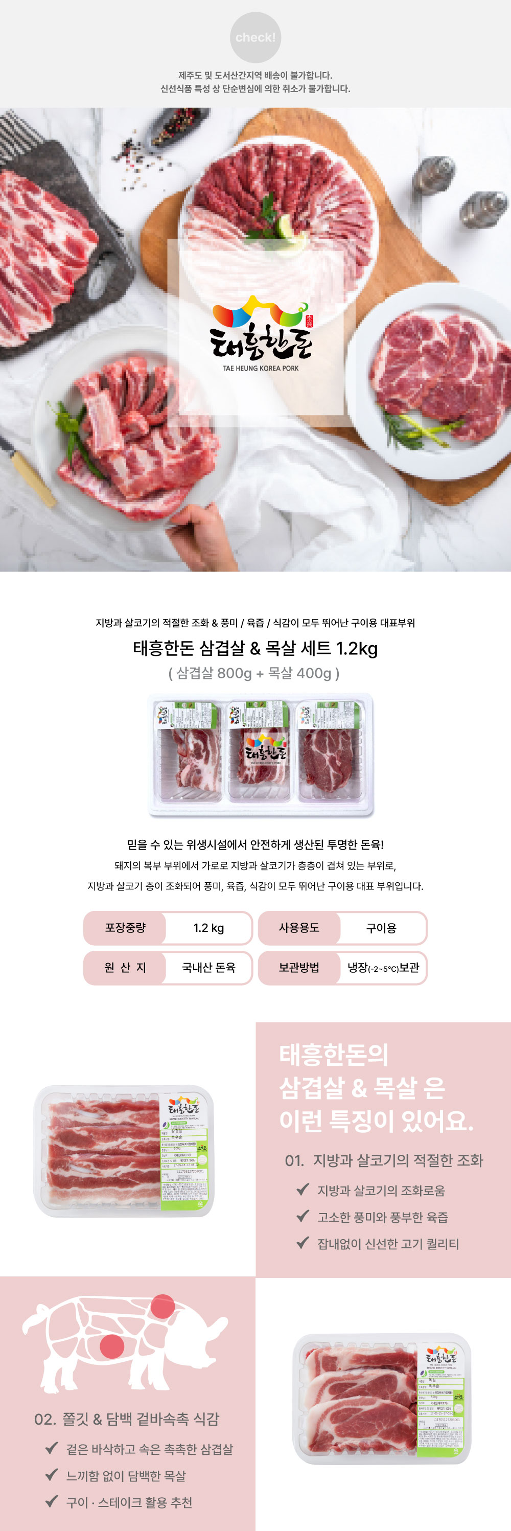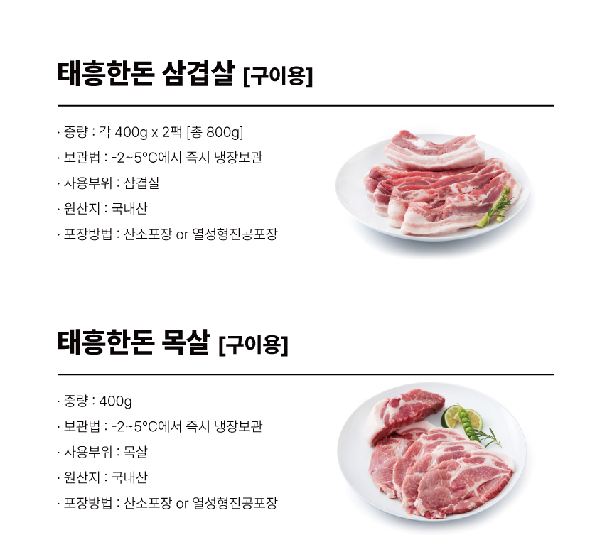 태흥한돈 구이세트 1.2kg(삼겹살 0.4kg*2팩+목살 0.4kg)