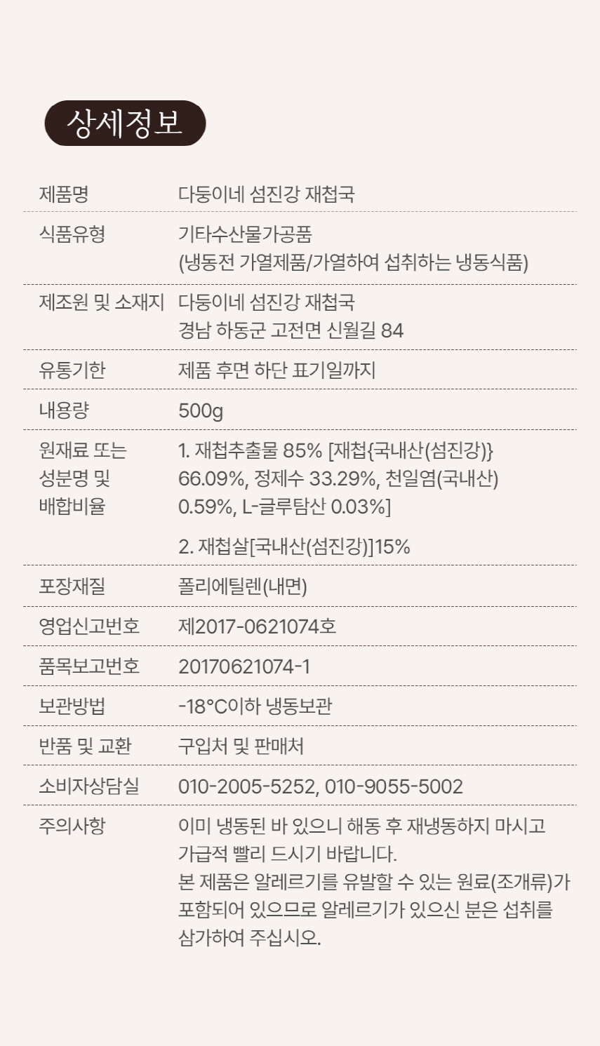 섬진강 재첩국 3kg(0.5kg*6팩)
