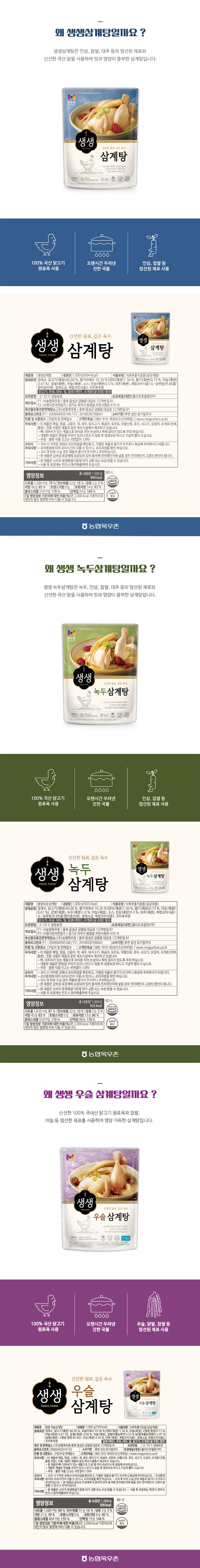목우촌 삼계탕 세트 3kg(생생삼계탕 1kg+녹두삼계탕 1kg+우슬삼계탕 1kg)