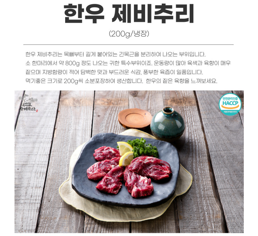 | 상품구성 | 한우 1등급이상 특수부위 200g (냉장) 1+1 이벤트 |