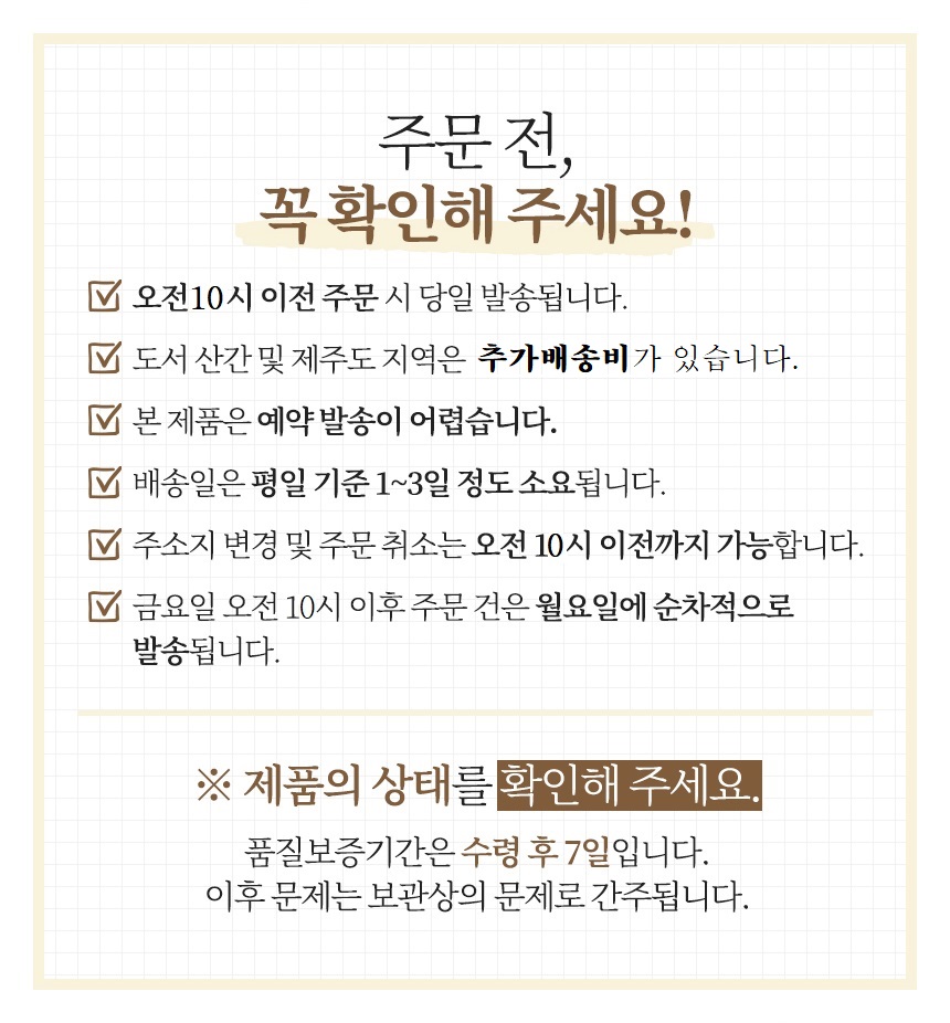 | 제조연월일, 소비기한 또는 품질유지기한 | 생산년도-2024년산// 당일도정 // 소비기한-주문일로부터 한달이내 섭취권장 |